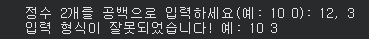 print("입력 형식이 잘못되었습니다! 예: 10 3")