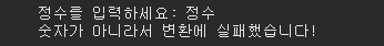 print("숫자가 아니라서 변환에 실패했습니다!")