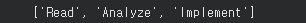 print("Read#Analyze#Implement".split("#"))